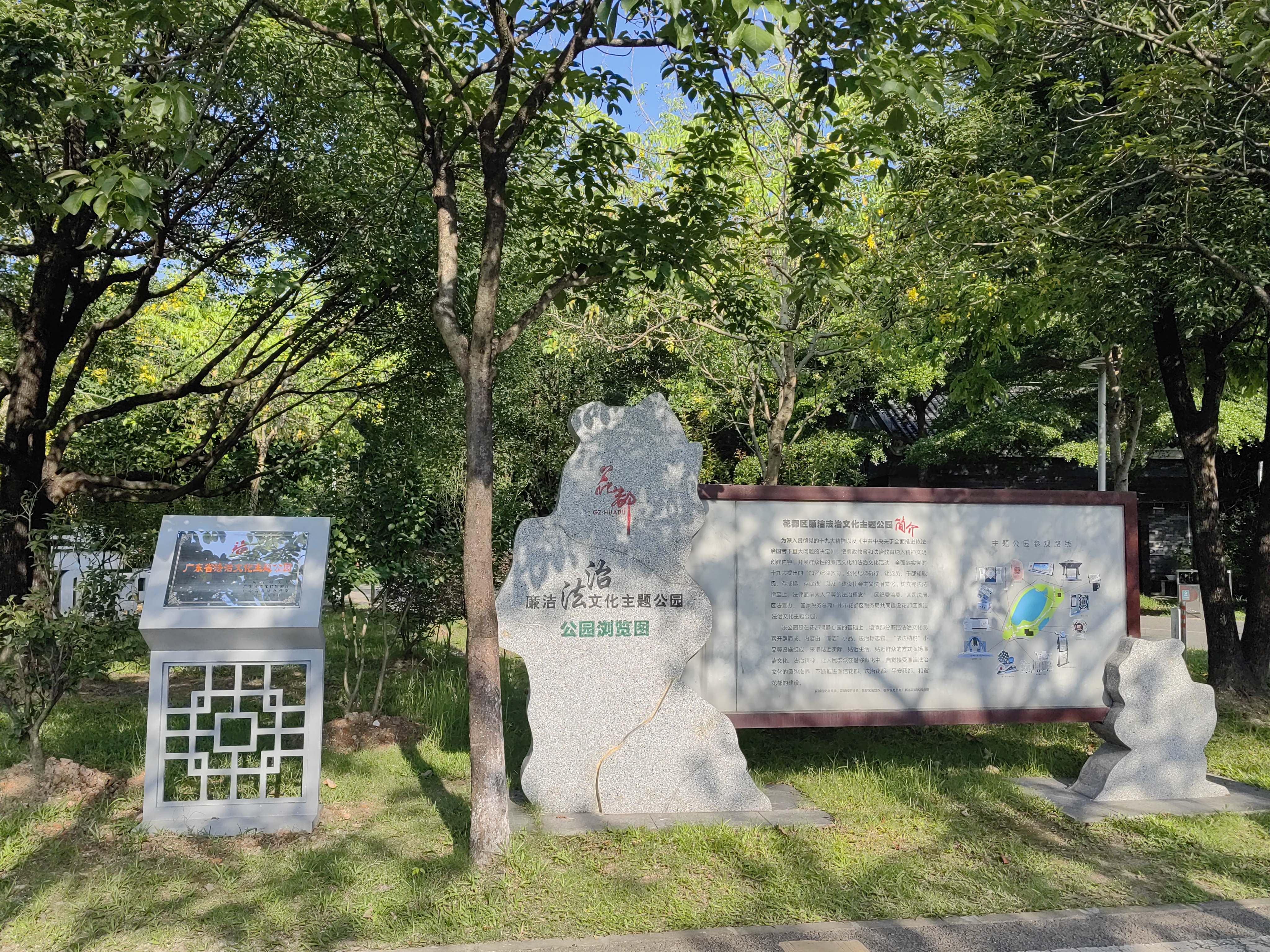 法治文化阵地是普法宣传的“主窗口”。花都区坚持把法治文化阵地建设作为培育法治信仰的重要载体,按照“因地制宜、整合资源、突出特色”的原则,构建起“国家级—省级—区级—村社级”四级法治文化阵地网络。目前,全区已建成2个国家级、9个省级民主法治示范村(社区),拥有1个省级法治文化主题公园、1个省级青少年法治教育实践基地、3个民法角、12个法治文化小公园、320个法治宣传栏、18个法治长廊和5个法治广场,这些阵地遍布城乡各个角落,将法治元素与自然景观、人文环境有机融合,让群众在休闲娱乐、日常出行中潜移默化接受法治熏陶,实现“抬头见法、驻足学法、心中有法”。