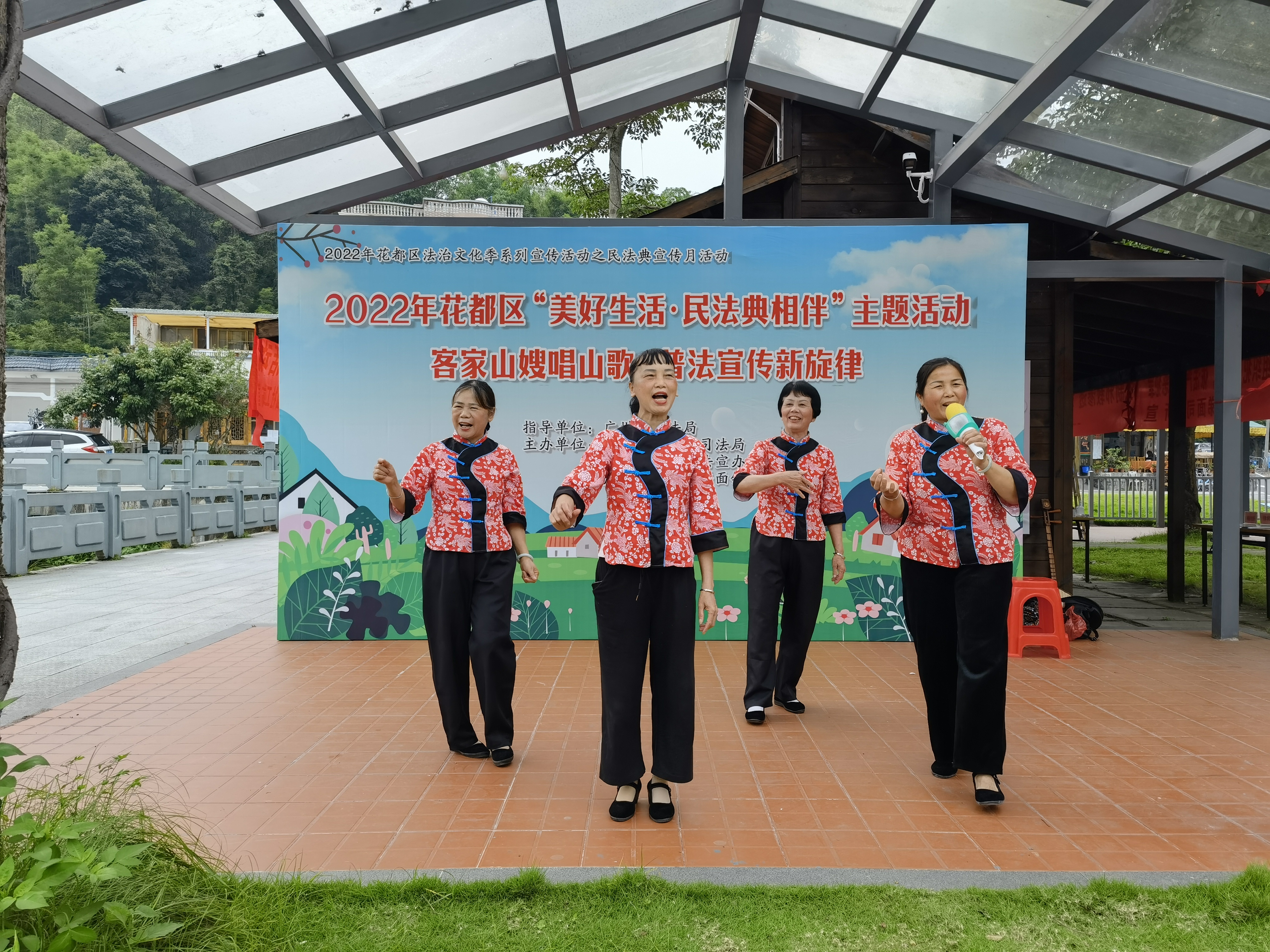 在普法主体上,花都区激活社会力量,让法治宣传“火”起来。充分发挥群众主体作用,培育了一批极具影响力的民间普法品牌。“秀全大妈”志愿服务组织组建多支普法队伍,运用“互联网+”模式制作新媒体作品,创编法治文艺节目深入各村(社区)演出200多场次,其创作的音乐快板《环保普法唱新歌》获第三届广东省法治文化节金奖,《宪法在我心中》朗诵节目获第四届广东省法治文化节银奖,成为基层普法的“生力军”。梯面镇“梯面客家嫂”以客家山歌为载体,开展“乡约5点”普法活动,用通俗易懂的方言将法律知识唱进田间地头,相关党建品牌荣膺“十四五”社会工作与公益慈善事业融合发展典型案例,是全国唯一入选的农村基层党建案例,让法治声音传遍乡村角落。