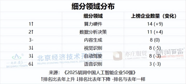 “在上榜企业中,北京以19家企业的数量领先,上海有14家,深圳6家,广州有4家。总体来看,一线城市的企业占据了上榜企业总数的80%以上,显示出一线城市在AI领域的重要地位和集聚效应。”