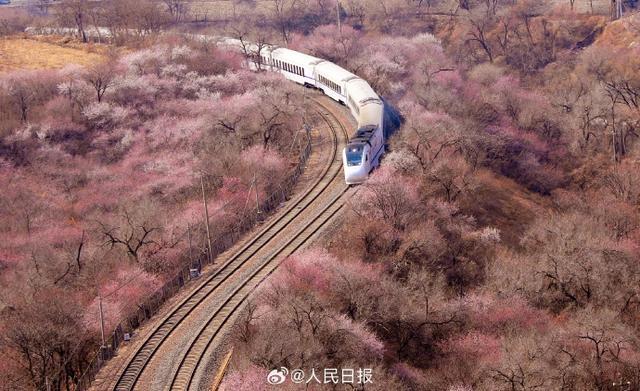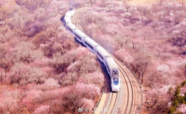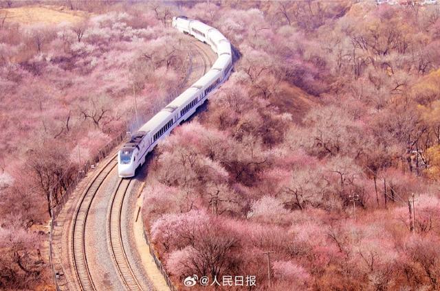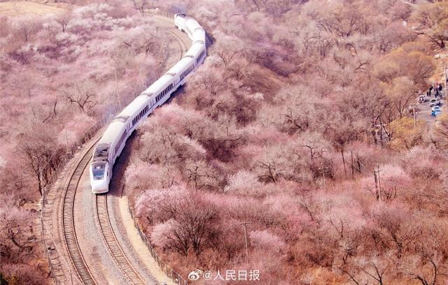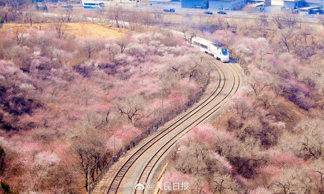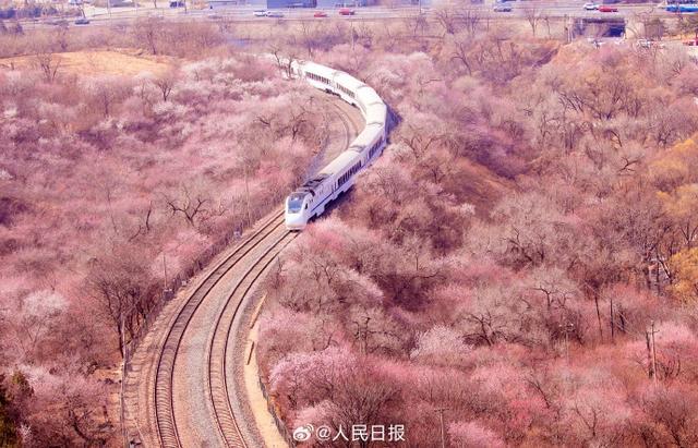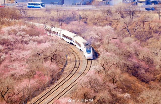 3月21日,一列S2线列车驶过居庸关长城附近,穿过一片花海,一派春意盎然,构成绝美的春日画卷,这也是北京著名的赏花打卡地。